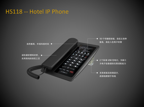新款HS108-PS 超薄IP電話外觀精致,功能強大,可靈活應用于不同場景,它具有更加強大的兼容性與拓展性,實現酒店通信與業務管理的融合,提高酒店管理與業務服務效率,為用戶提供更加便捷、舒適、安心的體驗。